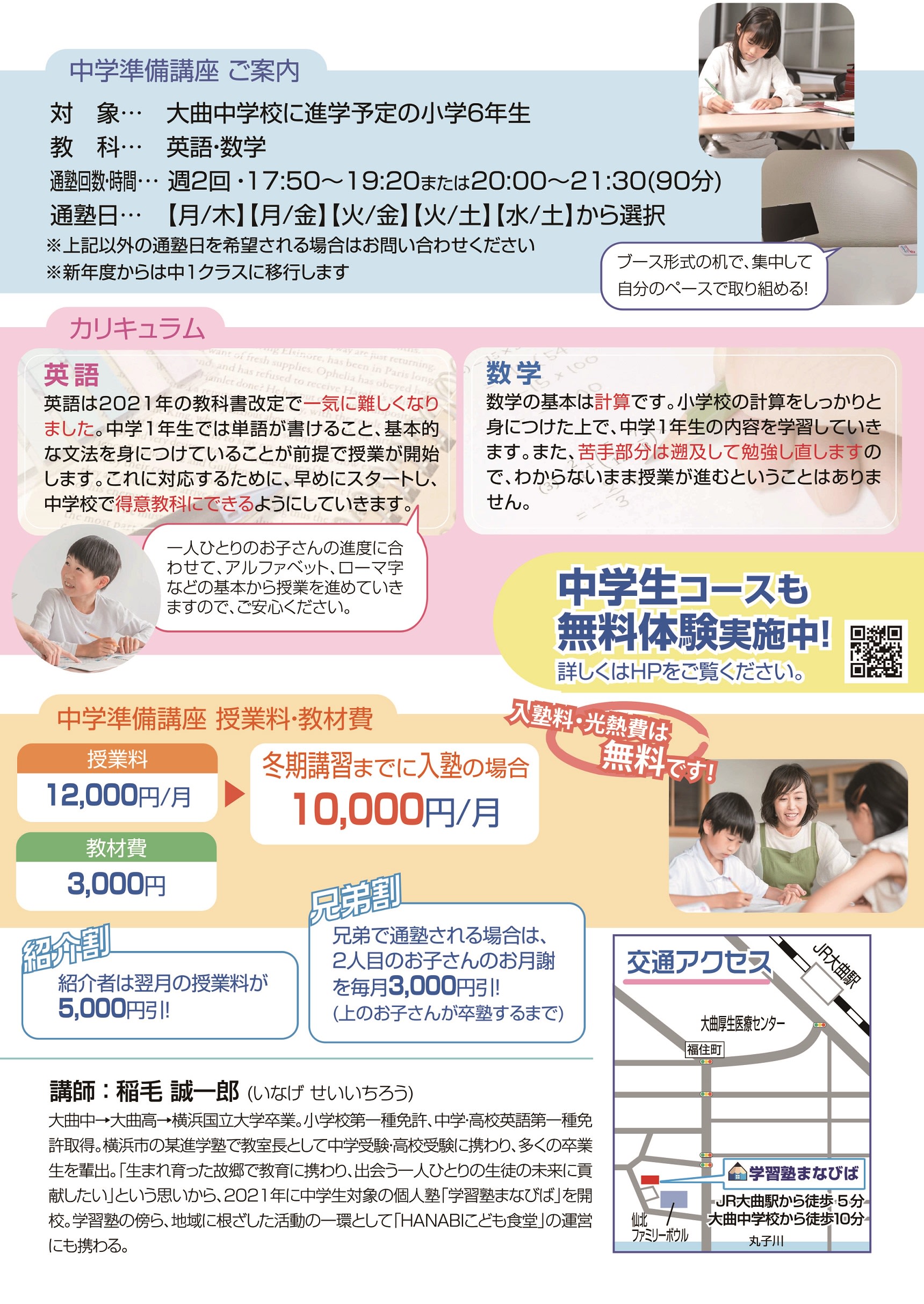 締切の場合、来年度の中学1年生の募集はございませんので、ご了承ください。